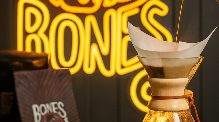 - Available in ground, whole bean, and single-serve Bones Cup formats